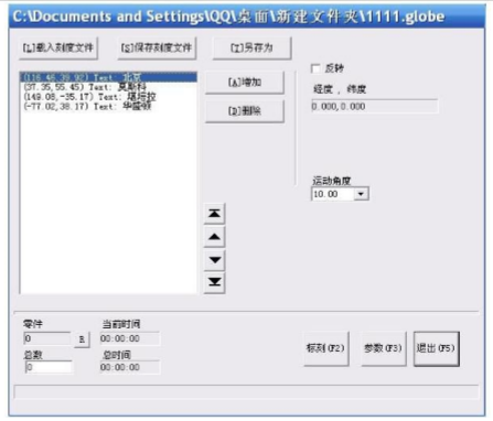 载入刻度文件:载入电脑已有的地球仪标刻文件,文件格式为.globe 。